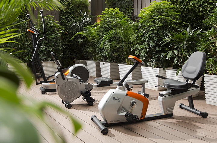 Sweat Zone offers fitness equipment in an open-air area for hotel guests’ workout.