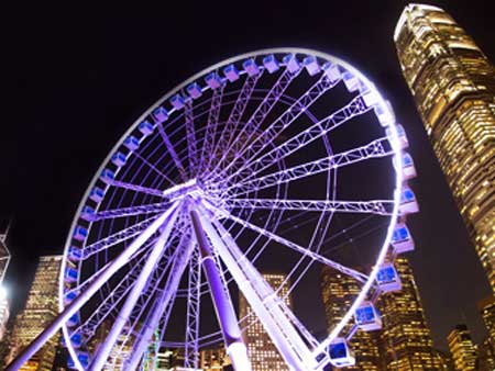 Get stunning day and night time views of the spectacular Victoria Harbour on the 60-metre high Hong Kong Observation Wheel.